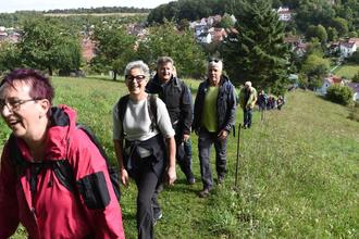 Heyerode. Mitglieder mehrerer Wandervereine und weitere Ausflügler aus dem Unstrut-Hainich-, Eichsfeld- und Wartburgkreis sowie aus dem benachbarten Hessen haben den neuen zertifizierten TOP-Wanderweg Heyerode standesgemäß eröffnet. Dieser verfügt über mehrere Alleinstellungsmerkmale. Der Pfad führt über 9,3 Kilometer um das südlichste Dorf des Eichsfeldes und bietet zauberhafte Ausblicke auf den Thüringer Wald und Höhen des Werratals. An der Tour mit Start- und Zielpunkt am Wanderparkplatz „Rondell“ hinter dem Alten Bahnhof und dem Heyeröder Grenzhaus beteiligten sich immerhin 96 Wanderfreundinnen und Wanderfreunde. Lediglich die sieben Monate junge Elise aus Heyerode als jüngste Teilnehmerin ließ sich streckenweise tragen oder im Kinderwagen über den Wanderpfad führen.
