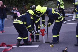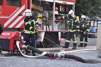 Richtig ins Zeug legen musste sich die Wendehäuser Einsatzgruppe mit Unterstützung der Schierschwender während einer Einsatzübung, als im alten Spritzenhaus oberhalb der Bonifatiusquelle plötzlich ein Brand zu löschen und Menschen zu retten waren. Dabei wurden die vielen kleinen und großen Zuschauer Zeugen, wie schwierig sich doch die Straßenkappe eines Unterflurhydranten öffnen ließ, ehe die Motorspritze in Betrieb genommen werden konnte. Eine erste erfolgreiche Bewährungsprobe hatte eine vor wenigen Wochen angelegte Zisterne mit 12.000 Litern Löschwasser-Reserve. Diese stellte Stephan Goldmann der Gemeinde im Zuge seines jetzt angelegten Brunnenkresse-Teichs am Bonifatiusbrunnen zur Verfügung.