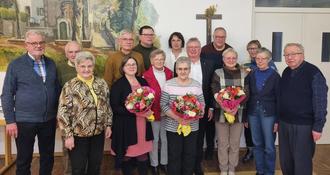 Beim nachgeholten Cäcilienfest ehrte Präses Pastor Klaus Leist langjährige Mitglieder. Insgesamt kommen die Auszeichnungen auf weit über 600 Jahre Chortreue. Geehrt wurden Ulrike Weber und Erwin Recktenwald (10 Jahre), Monika Schumann, Holger Pfeiffer und Hildegard Thiel (25), Maria Haberer (40), Susanne Eisenhuth (45), Elisabeth van Fonderen und Nicole Rodenbüsch (50), Dieter Balling (55), Ulla Roth, Ursula Balling und Hermann Lissmann (60), Christel Ritter (65) sowie Gerhard Maldener für außergewöhnliche 80 Jahre aktives Singen.