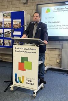 Dr. Magnus Jung, Minister für Arbeit, Soziales, Frauen und Gesundheit des Saarlandes, an der Dr.-Walter-Bruch-Schule in St. Wendel.