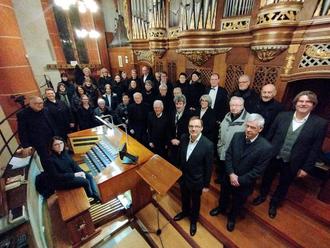 Die Kreuzweg-Kantate „Via Crucis“ von Franz Liszt führte den annähernd 100 Zuhörerinnen und Zuhörern vor Augen, wie ernsthaft und ambitioniert Liszt katholische Kirchenmusik schrieb. „Die Kreuzwegandacht für Chor und Orgel ist ein Unikum in der Musikliteratur“, wies Chorleiter Stefan Klemm zu Beginn der Veranstaltung hin. Das Werk ist stilistisch breit angelegt und betrachtet den Leidenswegs Jesu mit gregorianischem Hymnus, protestantischem Kirchenlied, Choralsatz à la Bach und mit spätromantischer Harmonik gesteigerter Choralvariation und Frauenchor-Passagen. Diese vielfachen Elemente wurden eingebettet in einen harmonisch raffinierten Orgelsatz dargeboten. Die 14 Stationen des Kreuzwegs, die zur Hälfte als reine Orgelsätze aufgeführt wurden, fanden zusätzlich durch Bildprojektionen statt.