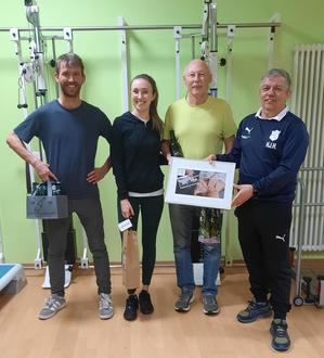 Der FC Niederkirchen hat die Glückwünsche der Physiopraxis PhysioFit Herrmann&Maus, zu ihrer Erweiterung, sowie der neuen Leitung, durch Lea Herrmann und Christian Maus, mit einem Präsent überbracht. Auf diesem Weg wollten wir auch Rudi DANKE sagen, dass wir unsere Trainingseinheiten dort durchführen können und hoffen dass er nun etwas kürzer treten kann.
