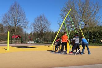 Die Ausstattung des neuen Platzes umfasst unter anderem ein Rollstuhlfahrer-Trampolin, ein Kleinkinderspielhaus mit unterfahrbarem Siebtisch, ein Inklusionskarussell sowie eine Nest-Doppelschaukel mit Kleinkindersitz - allesamt gezielt als Inklusionsspielgeräte konzipiert. Ergänzt wird das Angebot durch ein großes Spielkombi-Gerät, eine moderne Calisthenicsanlage mit Kombibarren, Seniorenbänke sowie eine gemütliche Sitzgruppe. Frisch gepflanzte Bäume ergänzen den einladenden Aufenthaltsraum im Freien, farbliche Akzente an den Geräten verleihen der Anlage ihr modernes Aussehen und ein neu gestalteter Fallschutzbelag sorgt für die nötige Sicherheit.