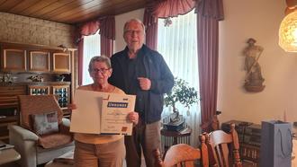 Hier überreichte der Vorsitzende ihr die Goldene Mitgliederurkund, die goldene Ehrennadel, eine Flasche Cremant sowie noch ein anderes kleines Präsent.
