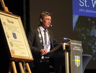 Zahlreiche ehrenamtlich Tätige aus 50 Jahren Geschichte der Kreisstadt waren der Einladung von St. Wendels Bürgermeister Peter Klär in den Saalbau gefolgt. Ihre Verdienste sollten an diesem Tag besondere gewürdigt werden, so der Rathauschef. „Bis heute haben mehr als 500 Frauen und Männer im Stadtrat ehrenamtlich für unsere Stadt mitgearbeitet und mehr als 1.500 Frauen und Männer haben dies in den Ortsräten für die Orte - ihre wunderschönen Dörfer - getan“, betonte Klär. „Mit Konstanz und Kontinuität ist unsere Stadt zusammengewachsen zu einer homogenen Einheit. Aus der Kernstadt wurde eine Stadt mit 16 Stadtteilen. Ein wunderschönes Fleckchen Erden, um das uns viele beneiden. Unser Gemeinwesen funktioniert. Mich macht das stolz und dafür möchte ich Ihnen danken.“