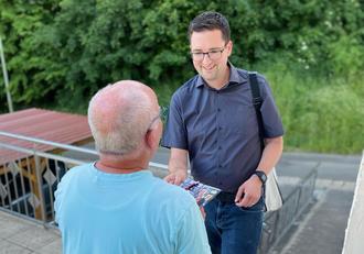 Nach etwas mehr als 500 besuchten Haustüren zieht Bürgermeisterkandidat Marc André Müller eine positive Halbzeitbilanz: „1.000 Haustüren möchte ich bis zum Beginn der Sommerferien persönlich besucht haben, um mich den Menschen in den 16 Stadtteilen vorzustellen und ihre Anliegen an die Stadtpolitik entgegenzunehmen. Ich bin überrascht, wie positiv gestimmt mir die St. Wendeler bisher entgegentreten.“ Da sich sein Vorhaben inzwischen herumgesprochen habe, gäbe es bei jedem Termin auch Bürger, die bereits auf seinen Besuch warteten oder im Anschluss an die Haustürbesuche gezielt so seiner Zuhörtour XL in zentraler örtlicher Lage kämen, um über ihre Wünsche und Anregungen zu sprechen oder ihn einfach persönlich kennenzulernen. „Besonders ermutigend finde ich die Rückmeldungen, dass viele es sehr begrüßen, wenn ich als Kandidat für das Amt des Bürgermeisters in jeden einzelnen Stadtteil komme und auch ohne vorherige Anmeldung ein offenes Ohr habe“, findet Marc André Müller. Dabei sei es für die Bürgerinnen und Bürger gar nicht schlimm, wenn man an der einen oder anderen Stelle offen und ehrlich sage, dass man ad hoc keine Antwort parat habe. Wichtig sei bloß, dass man hinterher nochmal eine Rückmeldung zu der Anfrage gebe, wenn dies gewünscht werde. „Die bewusste Entscheidung dafür, die Haustürbesuche ganz alleine zu machen, hat sich in meine Augen als richtig herausgestellt, da mich die Menschen im direkten 1:1 am besten kennenlernen können“, ist Müller überzeugt. Bis einschließlich 25. Juli sind noch viele weitere Termine geplant. Diese können auf der Homepage www.marcandre-mueller.de nachgelesen werden. Ebenfalls empfiehlt es sich, auf der Internetseite den kostenlosen Newsletter zu abonnieren, wenn man keine Neuigkeiten des „Neuen“ verpassen möchte.
