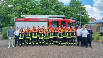 Ebenfalls gratulierte der Kreisbrandmeister Sebastian Alles und Funktionsbeigeordneter Alexander Zeyer zu den bestandenen praktischen und theoretischen Prüfungsteilen.