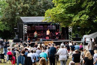 Blues, Bluesrock, Fusion, Funk, Jazz, Latin und Punk: Vier regionale Formationen bieten in zwei Doppel-Konzerten eine große Bandbreite populärer Musik auf dem wunderschönen Gelände am Kurhaus Harschberg außerhalb von St. Wendel, 2020 entdeckt als idealer Ort und beliebter Treff für ein Musik interessiertes Publikum.