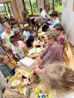 Einen Abschied und einen Neubeginn feierten 15 Kinder des Waldorfkindergartens St. Wendel. Gemeinsam mit ihren Eltern, Erziehern und den Kindern aus ihrer Einrichtung wurden die künftigen Schulkinder verabschiedet. Die Einstimmung und Vorbereitung auf die Schulzeit hatte für sie bereits mit dem Faschingsfest begonnen. Denn mit den Faschings-Motti der beiden Kindergartengruppen – „Wir fahren mit dem Wohnmobil in Urlaub“ und „Ponyhof“ – waren auch die Themen für die diesjährige Vorschularbeit geboren. „Die Vorschularbeit ist eine besondere Förderung der künftigen Schulkinder im letzten Kindergartenjahr. Als Vorschulkinder erleben sie sich als die Großen, die nun ihre während der Kindergartenzeit erlernten Fertigkeiten anwenden dürfen, wie das Weben, Sticken, Nähen, Fingerhäkeln, sie arbeiten an der Werkbank und vieles mehr“, erklärt Christine Schifftner, Leiterin des Waldorfkindergartens St. Wendel. So entstehen in vielen Stunden gemeinsamen Werkens handgefertigte Arbeiten aus Naturmaterialien. Und so konnten nun sieben selbstgewerkelte Wohnmobile aus Holz sowie acht wunderbar gearbeitete Ponyhöfe von den Familien bewundert werden.
