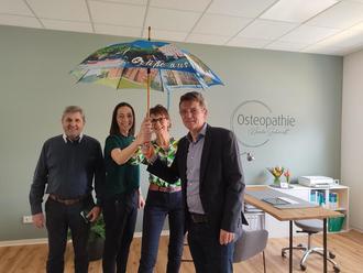 Bürgermeister Peter Klär war zu Besuch in der Brühlstraße. Nicole Schmidt bietet dort seit Januar Leistungen als Osteopathin an. In den gemeinsamen Räumlichkeiten betreibt Ellen Sandmeyer als Physiotherapeutin auch ihre Praxis.