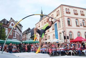 St. Wendel. Es geht wieder hoch hinaus in St. Wendel. Nach der furiosen Höhenjagd bis auf 5,86 m im vergangenen Jahr, treffen sich Top-Athleten aus aller Welt am 9. August erneut zum Stabhochsprung-Meeting auf dem St. Wendeler Schloßplatz. In der stimmungsvollen Open-Air-Sportarena mitten in der Fußgängerzone sind die Zuschauer hautnah dabei, wenn sich die Wettkämpfer dieser technisch anspruchsvollsten Disziplin der Leichtathletik in die Höhe schrauben und Hochleistungssport zum Anfassen bieten. Es ist spektakulär, das hochklassige Feld der Stabathleten beim Anlauf und der artistischen Überquerung schwindelnder Höhen aus nächster Nähe zu beobachten - und das bei freiem Eintritt.