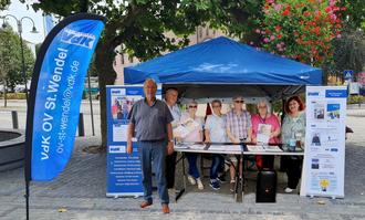 Am 28. Juli veranstaltete der VdK OV St.Wendel und der Pflegestützpunkt St.Wendel eine gemeinsame Aktion auf dem Schloßplatz St.Wendel. Hier stellten beide ihre Arbeit vor, ihre Tätigkeitsfelder sowie ihr Beratungsmöglichkeiten. Es wurde festgestellt, dass eine Vernetzung der verschiedenen Organisationen immer wichtiger wird um ein breites Hilf Angebot anbieten zu können.