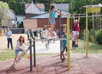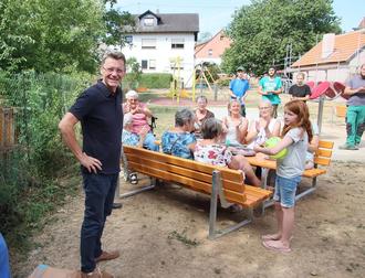 Ein zentral gelegener Spielplatz in Hoof, der mit einer Nestschaukel, zwei Spiellandschaften und einer Doppelschaukel zeitgemäße Spiel- und Spaßmöglichkeiten für Kinder und Kleinkinder bietet, wurde jetzt von St. Wendels Bürgermeister Peter Klär zum Spielen geöffnet und somit seiner Bestimmung übergeben. Der Spielplatz ist Teil eines neu entstehenden Mehrgenerationenplatzes in der Hoofer Dorfmitte. Dieser soll künftig für verschiedene Alters- und Bevölkerungsgruppen einen Aufenthalts- und Verweilort mit einer Vielzahl an Beschäftigungsmöglichkeiten bieten. „Ich freue mich besonders, dass die Kinder die Ersten sind, die den Mehrgenerationenplatz spielerisch nutzen können - passend zur Ferienzeit“, so Klär. „Mit der Auswahl der Spielgeräte haben wir ein attraktives und modernes Angebot für Kinder jeden Alters geschaffen.“
