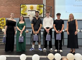 Zum Abschluss ehrte die stellvertretende Schulleiterin die herausragenden Leistungen von besonders erfolgreichen Schülerinnen und Schülern: Vivienne Pearl Alt, Lenny Gillen, Maximilian Klein, Fynn Matthias Metzdorf, Amir Sedaghat und Ann-Kathrin Weis.