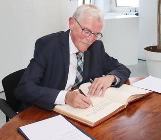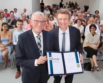 „Gerhard Koepke steht somit auch stets für die Werte und Errungenschaften der Bürgergesellschaft ein und hat durch sein vielfältiges Wirken hier Maßstäbe in unserer Stadt gesetzt. Dabei war er nie ein Mann der großen Worte, sondern stets ein Mann der Tat, ein Fürsprecher des bürgerlichen Engagements, welches er vorbildhaft vorlebte. Dies soll nun mit der Verleihung der Ehrenbürgerwürde eine entsprechende Wertschätzung erfahren“, sagte St. Wendels Bürgermeister Peter Klär während er Gerhard Koepke die Ehrenbürgerurkunde übereichte.