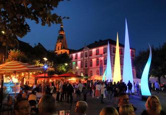Wie immer taucht die St. Wendeler Innenstadt dabei in ein ganz besonderes Licht. Über 40 riesige Pylonen und Lichtsäulen zeigen den Gästen den Weg zu den zahlreichen Fachgeschäften. Lichtstäbe, Flammschalen und tausende Kerzen runden das traumhafte Ambiente ab. Zwei riesige leuchtende Wesen stolzieren durch die Innenstadt. Die Nachtschwärmer sorgen für Spaß bei und mit den Besuchern.