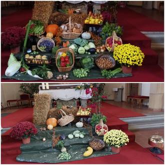 Am Sonntag, 2. Oktober, wahrscheinlich in der Zeit zwischen 12.00 Uhr und 17.00 Uhr, drangen Unbekannte in die Pfarrkirche ein. Sie entwendeten die von den Mitgliedern des Pfarrgemeinderates mit viel Mühe und Liebe aufgebauten Früchte und Deko-Materialien des Erntedankaltars. Das Foto zeigt die Situation vor und nach der Tat.