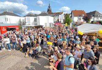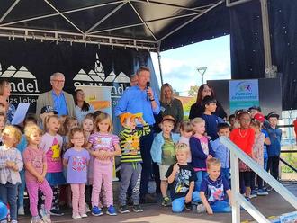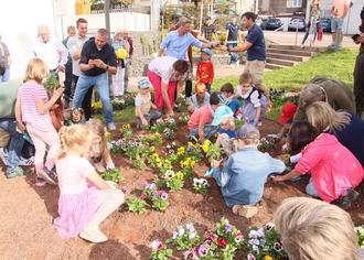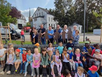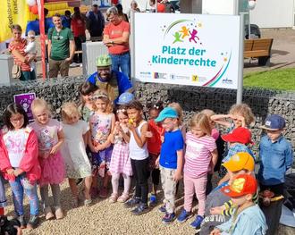 St. Wendel. Rund 1.000 Besucher waren dabei, als der neu gestaltete Platz in der Mott neben dem Mia-Münster-Haus zum ersten „Platz der Kinderrechte“ im Saarland wurde. Bürgermeister Peter Klär hatte zusammen mit der Staatssekretärin des Bildungsministeriums, Jessica Heide, Landrat Udo Recktenwald, dem Geschäftsführer der Katholischen Kita gGmbH Saarland, Rainer Borens, und den Moderatorinnen, Patricia Rammacher und Andrea Tschida das Schild für den „Platz der Kinderrechte“ feierlich enthüllt und so den neu gestalteten Bereich offiziell eingeweiht.