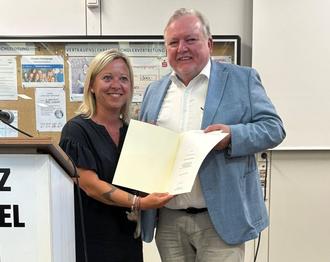 Staatssekretärin Jessica Heide mit Hubert Maschlanka.