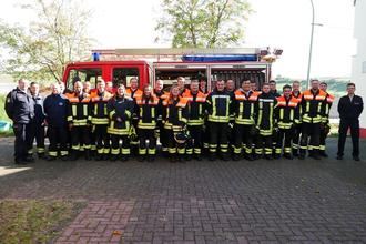 Neben der Theorieprüfung wurden auch in der Praxis die Lehrgangsinhalte der vergangenen 40 Ausbildungsstunden geprüft. Zum Lehrgangsabschluss überreichte stellv. Wehrführer Swen Gordner den Lehrgangsteilnehmern die Urkunden und gratulierte mit Lehrgangsleiter Werner Wagner den Absolventen.