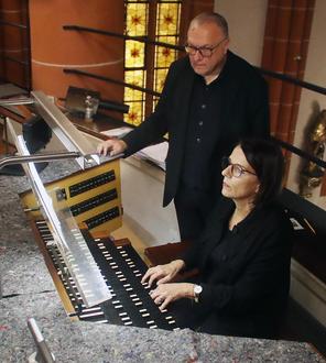 Der musikalische Leiter Stefan Klemm und Organistin Martina Haßdenteufel.