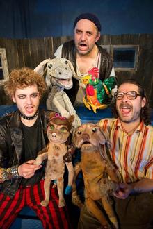 Die Figurentheaterspieler Stefan Kügel und seine beiden Söhne Benjamin und Nando Seeberger führen an diesem Abend dieses mitreißende Stück auf. Drei „kobberneggische (merkwürdige, seltsame) Kunden“ sind völlig am Boden und fertig mit der Welt – nichts als Probleme am Hals und keine Aussicht auf Besserung ihrer miserablen Lage. Da stoßen sie zufällig auf die uralte Geschichte von den vier Tieren, denen es an den Kragen geht, weil sie nutzlos geworden sind und deshalb ausgemustert werden sollen – also machen sie sich auf, um in Bamberg Stadtmusikanten zu werden, denn etwas Besseres als den Tod finden sie überall.