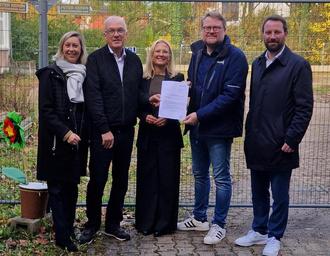Offizielle Übergabe der Fördermittel des Schulbauprogramms BAUSTEIN für den Neubau der Akademie für Erzieherinnen und Erzieher an der Dr.-Walter-Bruch-Schule