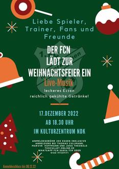 Werte Sportfreunde - Mitglieder - und Gönner des 1.FC Niederkirchen. Nach zweijähriger Abstinenz wird es in diesem Jahr wiederum eine Weihnachtsfeier des FCN geben und zwar am 17. Dezember 2022 im Kulturzentrum in Niederkirchen mit Live Musik.