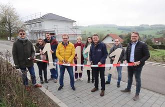 St. Wendels Bürgermeister Peter Klär (Dritter von rechts) weiht das Hoofer Neubaugebiet "Am Hümes" ein. Mit dabei: Torsten Lang (rechts), Staatssekretär im Ministerium für Inneres, Bauen und Sport und Hoofs Ortsvorsteher Gernot Müller (Vierter von links).