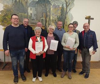 Folgende Chormitglieder wurden geehrt: Christel Ritter (60 Jahre), Sabine Hönig (50 Jahre), Hans Eisenhuth (30 Jahre), Joachim Hinz (25 Jahre), Klaus Stein (25 Jahre), Anna Klemm (25 Jahre) sowie Natalia Schinhofen (10 Jahre).