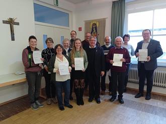 Im Rahmen der Cäcilienfeier des Chores der Wendelinusbasilika zeichnete der Präses Pastor Klaus Leist am Sonntag, 3. Dezember, langjährige Sängerinnen und Sänger für ihre Treue aus. Er betonte in seiner Ansprache, wie wichtig die musikalische Gestaltung der Gottesdienste und weitere Veranstaltungen der Pfarrei sind und bedankte sich für den besonderen Einsatz aller Chormitglieder sowie des Chorleiters Stefan Klemm. Ausgezeichnet wurden für 10 Jahre: Monika Schumann, Ernst Thiel, Monika Wagner, Hannah Eisenhuth und Markus Tröster. Für 25 Jahre: Christine Stiefvater, Barbara Koßmann. Für 40 Jahre: Stephan Schäfer und Susanne Eisenhuth. Für 45 Jahre: Nicole Rodenbüsch, Sabine Hönig, Elisabeth van Fonderen. Für 50 Jahre: Beate Schmitt. 60 Jahre: Gottfried Schwan. 75 Jahre: Gerhard Maldener. Alle Geehrten können eine langjährige und aktive Mitgliedschaft in Chören mit kirchenmusikalischer Zielsetzung nachweisen. Die Urkunden, Broschen und Nadeln wurden vom Diözesancäcilienverband in Trier ausgestellt. Er ist ein Zusammenschluss all der etwa 25.000 Christinnen und Christen, die sich im Bereich der Kirchenmusik im Bistum Trier engagieren. Die Cäcilienfeier, welche aufgrund der Pandemie die erste Zusammenkunft dieser Art seit 2018 war, wurde zu einer besonderen Begegnung für die Chorgemeinschaft. Musikalische, literarische und kulturelle Beiträge rundeten zu einem kurzweiligen Nachmittag ab. Am Vormittag gestaltete der Chor das Hochamt in der Basilika mit. Die frühchristliche Märtyrerin Cäcilia gehört zu den bekanntesten Märtyrerinnen. Seit dem vierten Jahrhundert wird sie im Messkanon erwähnt. Sie gilt als Schutzpatronin der Sänger, Musiker und Dichter, der Organisten, Orgelbauer, Instrumentenmacher und nicht zuletzt der Kirchenmusik. Am 22. November ist ihr Gedenktag.