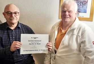 Thomas Riotte (rechts) überreicht den 500-Euro-Gutschein an den Gewinner Jörg Stoll aus St. Wendel