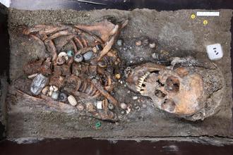 Die untersuchte Grablege gehörte zu einer etwa 25-30 Jahre alten Frau. Die Tote war mit verschiedenen Speisebeigaben und persönlichen Gegenständen bestattet worden. Insbesondere zahlreiche Schmuckgegenstände aus Gold und Silber sowie ein getriebenes Bronzebecken unterstreichen die herausragende soziale Stellung der Verstorbenen. Die Objekte von herausragender kunsthandwerklicher Qualität offenbaren dabei weitreichende kulturelle Beziehungen von Angehörigen dieser Oberschicht bis nach Mittelitalien und in den Mittelmeerraum.