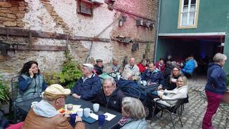 Samstag, den 11.Oktober 2025, lud der Kultur- und Museumsverein Kölleda e.V. zum 2. Glühweinabend ein. Bereits 17 Uhr füllte sich der Hof vor der Druckerei zusehends. Die Mitglieder hatten Möhren-Ingwersuppe, Kürbissuppe und verschiedene Getränke zum Verzehr vorbereitet. Im Hof waren Stehtische und Sitzgruppen platziert und unser Vereinsmitglied Klaus Schiecke hatte die Feuerschale entzündet und den ganzen Abend über betreut. Der Sänger Arnaldo aus Kölleda unterhielt die Gäste mit seiner Musik und bekam viel Beifall von den Anwesenden.