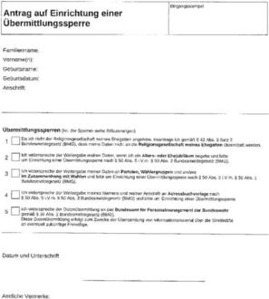 Das Bundesmeldegesetz räumt die Möglichkeit ein, der Übermittlung von persönlichen Daten zu widersprechen. Wenn Sie von Ihrem Recht Gebrauch machen wollen und Einwohner der Stadt Kölleda sowie einer Mitgliedsgemeinde der VG sind, verwenden Sie bitte nachfolgendes Formular: