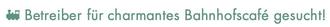 Wir suchen ein Konzept, das den ehemaligen Bahnhof bereichert; sei es ein Café-Bistro, ein Eiscafé oder ein Ladengeschäft mit einem kleinen Imbiss.