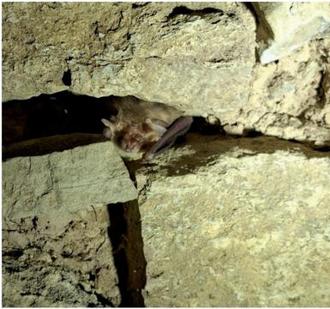 In den Mauerritzen des Kellers entdeckte Herr Schmidt eine Mopsfledermaus sowie ein Graues Langohr, die sich dort sicher zurückgezogen hatten.