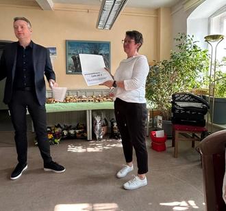 Nachdem die stellvertretende Vorsitzende, Antje Lippich, ein paar einleitende Worte zum Fest fand und die Anwesenden begrüßte, übergab sie das Wort an Landrat Christian Karl und Bürgermeister Uwe Kraneis. Der Landrat übergab dem Verein einen Scheck über 100,- € und bedankte sich bei den Mitgliedern für ihr ehrenamtliches Engagement. Der Bürgermeister Uwe Kraneis, hatte dem Verein bereits einen lang gehegten Wunsch erfüllt und ab Februar eine Halbtagsstelle für das Museum geschaffen. Somit sind die Öffnungszeiten durch den Mitarbeiter, Felix Horch, abgesichert. Der Verein „Gemeinsam für Kölleda“ übergab unserem Verein ein Aprikosenbäumchen. Dies nahm langjähriges Vereinsmitglied Bärbel Oehler, stellvertretend entgegen. Sie hat den Museumsgarten über viele Jahre mit ihrem Mann liebevoll gepflegt. Einen geeigneten Standplatz für das Bäumchen hatte sie sofort im Kopf. Kirstin Freybote zog in ihrer Rede noch einmal Resümee über die vergangenen Geschehnisse im Verein. Sie bedankte sich bei den anwesenden Gründungsmitgliedern für die jahrelange Zusammenarbeit und Antje Lippich übergab die Präsente. Auch unsere Ehrengäste bekamen ein Dankeschön überreicht.