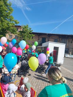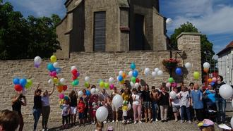 Zum Ende der Veranstaltung haben alle Beteiligten für alle Kinder dieser Welt einen Ballon steigen lassen.