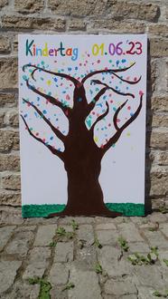 Sandro Heffe sorgte für gute Tanzstimmung. Um eine Erinnerung an den Kindertag zu schaffen, konnten sich die Kinder mit ihrem Fingerabdruck auf einer Leinwand verewigen.