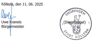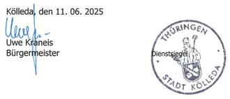 Sofern diese Satzung unter Verletzung von Verfahrens- oder Formvorschriften, die in der Thür. Kommunalordnung (ThürKO) enthalten oder aufgrund derThürKO erlassen worden sind, zustande gekommen ist, so ist die Verletzung gem. § 21 Abs. 4 Satz l ThürKO unbeachtlich, wenn sie nicht innerhalb eines Jahres nach Bekanntmachung der Satzung gegenüber der Stadt Kölleda unter Bezeichnung des Sachverhaltes, der die Verletzung begründen soll, schriftlich geltend gemacht worden ist. Dies gilt nicht für Verletzungen von Anzeige-, Genehmigungs- oder Bekanntmachungsvorschriften.