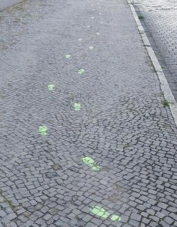 Nachdem am 18.07.2025 für die Grundschüler eine Überquerungshilfe in der Salzstraße installiert wurde, hat der Betriebshof den Schulweg wieder zusätzlich mit Fußspuren markiert. Pünktlich zum Schulbeginn werden die Kinder nun durch die Fußspuren zur Überquerungshilfe geleitet und können die Straße sicher queren und in die Schule gehen.
