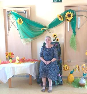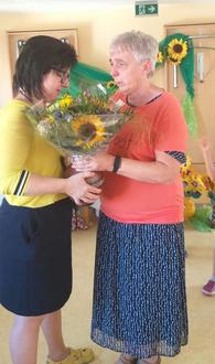 Zum Abschied bekam Tante Lydia von jedem Kind eine gebastelte Sonnenblume aber auch die Lieblingsblumen in blühender Pracht.