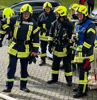 Auch wenn es kein "echter" Alarm war, die Feuerwehrmänner und -frauen gingen mit Atemschutz in das Gebäude und suchten zwei vermisste Personen. Großen Applaus gab es am Ende der Übung für alle Kameraden.