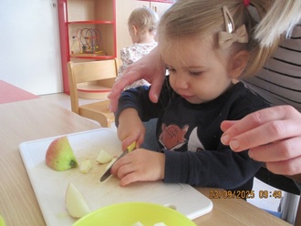 Wo wachsen Äpfel und wie? Auch der Geschichte vom Apfelmäuschen lauschen wir und spielen sie nach. Wir backen Apfelkuchen und überlegen, was man noch alles aus Äpfeln machen kann.