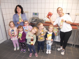 Am 10. September waren wir zum „Apfeltag“ in den Edeka Schneider nach Heiligenstadt eingeladen. Hier lernten wir noch mehr über Äpfel und machen sogar eine Apfelralley. Wir teilten uns in zwei Teams auf und mit einem Einkaufswagen alle möglichen Produkte sammeln, in denen Äpfel enthalten sind.