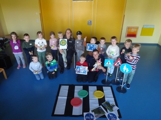Sie übten mit den künftigen Schulkindern das richtige Überqueren der Straße, die Farben der Ampel und was bei der entsprechenden Farbe zu tun ist, sowie das richtige Verhalten beim Fahren mit dem Bus.