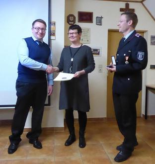 Zum Abschluss wurden mehrere Kameraden durch die Bürgermeisterin Frau Dr. Marion Frant ausgezeichnet. So wurden Paul Gaßmann für 10-jährige, Mario Ständer, Patrick Hartung und Martin Hentrich für 25-jährige sowie Johannes Mock für 50-jährige aktive und pflichttreue Dienstzeit in der Feuerwehr geehrt.