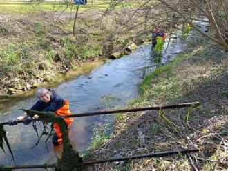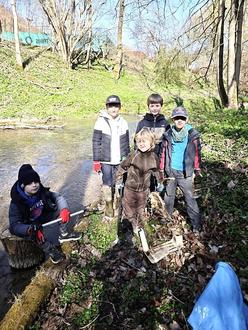Die Mitglieder der Jugendfeuerwehr Geisleden bildeten mit der Unterstützung von Cornelia Gabler, Ramona Montag und Markus Wand zwei Gruppen. Eingesammelt wurde der Müll am Gewässerlauf der Geislede.