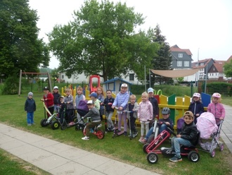 | An diesem Tag brachten die Kinder ihre Fahrzeuge, Puppenwagen Bagger… mit. |